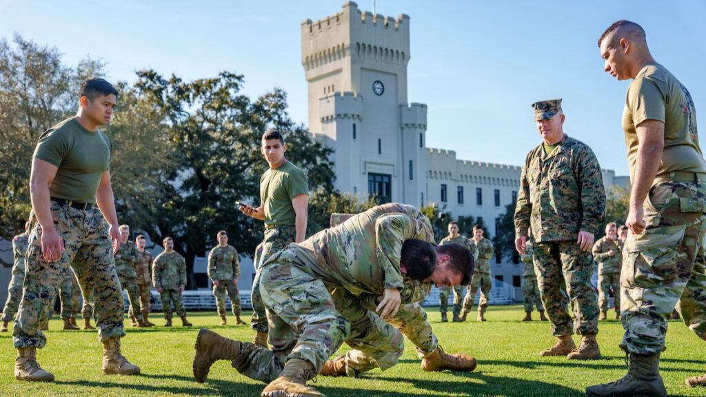 Citadel knobs participate in the Freshman Leadership Training Exercise (LTX).