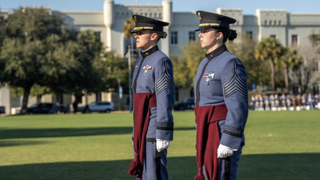 During Friday’s parade on Feb. 13, two Citadel cadets were each presented with an esteemed award. Cadet Lt. Col. Lucy McArthur was awarded the Society of the Cincinnati Medal and Cadet Lt. Col. Olivia Liquori was presented with the General Douglas MacArthur Cadet of the Year Award.