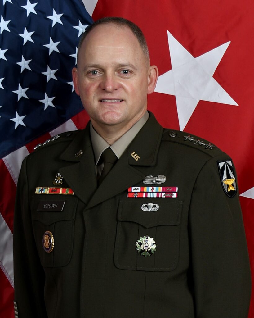 Lt. Gen. E. Miles Brown, USA, ‘95, is currently the Acting Deputy Commanding General of United States Army Transformation and Training Command. He was previously the Deputy Commanding General, U.S. Army Futures Command and the Commanding General, Combat Capabilities Development Command, U.S. Army Futures Command. He has a B.A. in History from The Citadel, and an M.S. in Administration from Central Michigan University and an M.S. in National Security and Strategic Studies from the National Defense University.