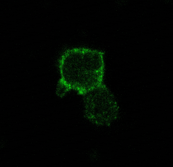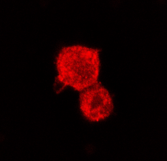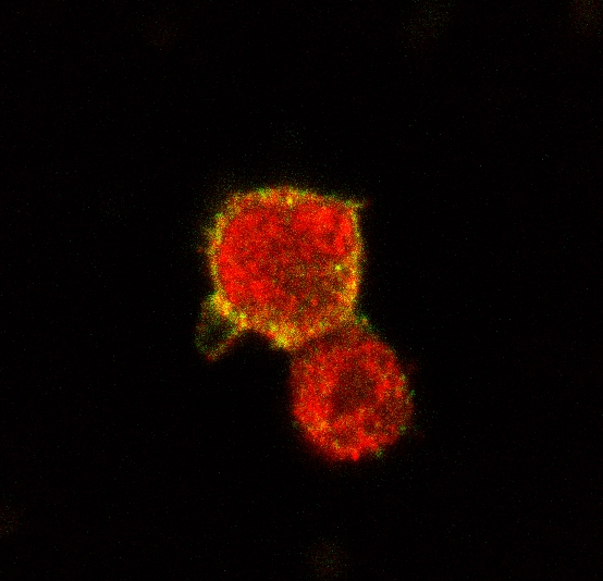 The final micrograpic shows that Histone H3 is merged with the mitochondria, which Zanin says supports their hypothesis that Histone H3 may help control apoptosis by communicating with mitochondria.