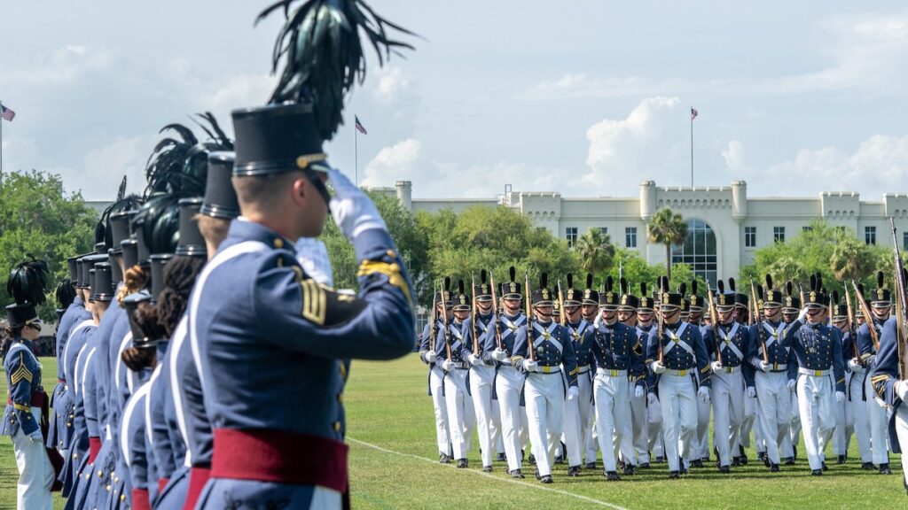 During the parade, the Class of 2026 Regimental Commander David Ropp will pass the sword and control of the South Carolina Corps of Cadets to Class of 2027 Regimental Commander, Cadet Paul Scarpa.